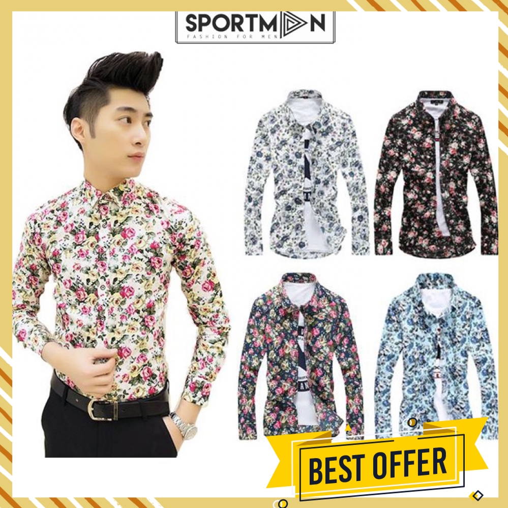 [THANH LÝ - XẢ KHO] Sơ mi nam dài tay in hoa cá tính, sơ mi hàn quốc - SM75 (ĐẶT HÀNG CHỌN MÀU VÀ SIZE) - Dài tay