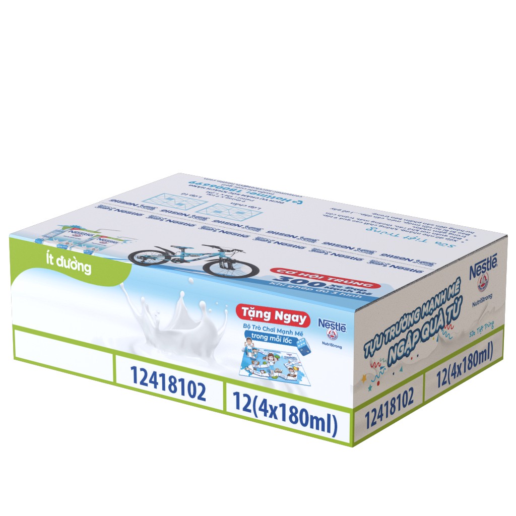️Sữa nước NESTLÉ chất lượng Thụy Sĩ Mỗi hộp cung cấp đến 25% nhu cầu Canxi mỗi ngày cùng các dưỡng chất khác, cho xương chắc khỏe, giúp trẻ MẠNH MẼ Thành phần: Nước, sữa bột tách kem 9% (skimmed milk powder), đường, dầu bơ từ sữa (from milk), dầu thực vật, calci phosphat tự nhiên từ sữa (from milk), chất ổn định (460i, 471, 466, 407), và các vitamin (B3, A, D, B6, B9, B8) Bảo quản sản phẩm nơi khô ráo, thoáng mát, tránh ánh nắng trực tiếp HSD: 8 tháng kể từ NSX Xuất xứ: Việt Nam Lưu ý: Bao bì, quà tặng kèm thay đổi tùy đợt nhập hàng.