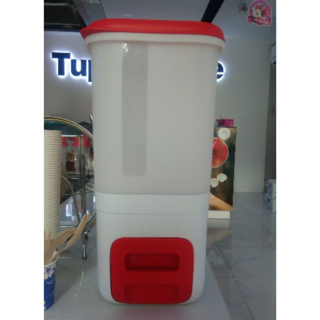 ️Thể tích: 10kg Kích thước: 39.2 x 37.8 x 18.8cm Ưu điểm và tiện ích: - Thiết kế khối chắc chắn gọn gàng tiết kiệm không gian bếp với bề ngang chỉ 18.8cm. - Nguyên lý lấy gạo tuần hoàn (Fresh In Fresh Out) giúp phần gạo cũ hơn được sử dụng trước và phần gạo mới thêm luôn ở phía trên. - Thiết kế cửa sổ mặt trước nhựa trong giúp dễ dàng nhìn thấy mức gạo được chứa bên trong. Công dụng: - Bảo quản gạo lên tới 10kg, giúp gạo vẫn giữ độ tươi mới cho đến hạt cuối cùng. Cách sử dụng: - Kéo nhẹ thẻ (phía trên ngăn kéo) giúp gạo rớt xuống ngăn kéo. Một lần kéo thẻ tương đương 150gram gạo. - Ấn thẻ để đóng thẻ lại. - Kéo ngăn kéo ra để lấy gạo.