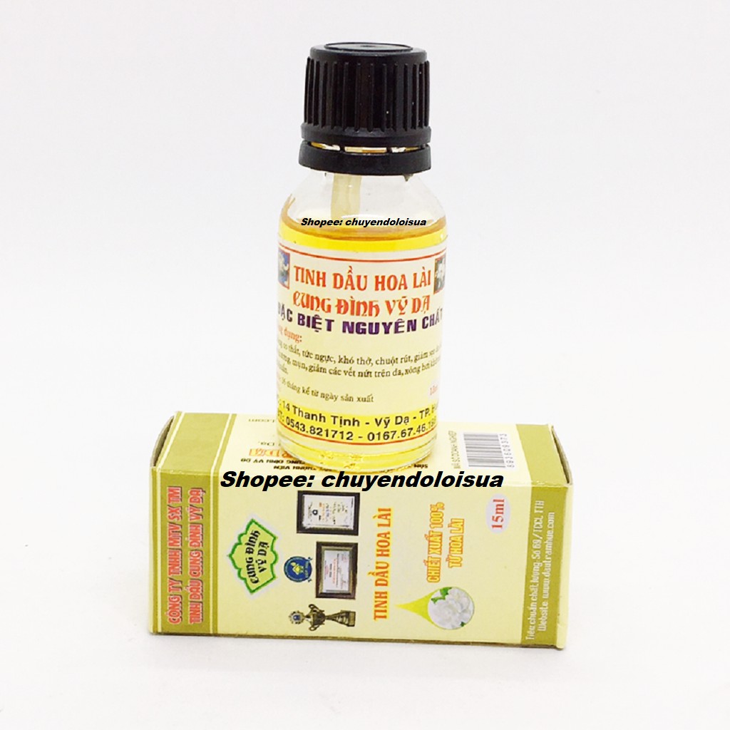 ️Tinh Dầu Hoa Lài ( Nhài ) Cung Đình Vỹ Dạ Huế Nguyên Chất: 1, Thành phần: Chiết xuất từ nụ hoa Lài (Nhài) nguyên chất 100%. 2, Công Dụng của tinh dầu hoa lài (hoa nhài) Cung Đình Vỹ Dạ Huế: - Tinh dầu hoa Lài giúp xua tan căng thẳng, mệt mỏi: Với hương thơm nhẹ nhàng vô cùng đặc trưng, tinh dầu hoa Lài giúp xua tan những căng thẳng, mệt mỏi , lo toan trong cuộc sống hàng ngày. Tinh dầu hoa Lài giúp làm dịu các dây thần kinh trong khi khôi phục lại sự lạc quan và năng lượng sống cho con người. Sử dụng tinh dầu hoa nhài còn giúp nâng cao tinh thần và tăng sự phấn khích, do đó giúp tăng sự tự tin cũng như làm giảm nỗi sợ hãi, lo âu trong mỗi người. Chính vì điều này nên tinh dầu hoa Lài rất có giá trị trong việc điều trị bệnh trầm cảm, stress. - Tăng hưng phấn, khơi gợi cảm giác yêu đương: Theo kinh nghiệm dân gian và cả các công trình nghiên cứu khoa học, Tinh dầu hoa nhài đặc biệt tốt trong việc chăn gối và đời sống tình cảm của các cặp đôi. Hương thơm quyến rũ của loại tinh dầu này giúp tăng hưng phấn, khơi gợi cảm xúc, chữa trị chứng lãnh cảm và tạo ra cảm xúc mãnh liệt. Chúng cùng với tinh dầu hoa hồng được xem là những thứ cực phẩm trong phòng the. - Điều hòa kinh nguyệt, giảm đau: Tinh dầu hoa nhài tác dụng tốt cho việc điều hòa kinh nguyệt, giảm các cơn đau bụng trong thời gian kinh nguyệt. Tại một số bệnh viện sản quốc tế họ còn xông tinh dầu hoa nhài để giúp các sản phụ giảm căng thẳng và sinh con dễ dàng hơn do nó có tác dụng giảm đau. - Dưỡng và làm trắng da: Tinh dầu hoa nhài giúp cải thiện độ đàn hồi da. Cũng tốt cho vết rạn da và những vết sẹo. Dầu hoa nhài là tuyệt vời ở chỗ nó phù hợp với tất cả các loại da ....... nhờn, khô, nhạy cảm và da bị kích thích. - Ngoài các công dụng chính như trên, tinh dầu hoa nhài có tác dụng chữa một số bệnh liên quan đến họng như ho nhẹ, viêm thanh quản hay viêm họng. và giảm các cơn đau nhức do bong gân hay chân tay tê cứng. - Có thể sử dụng tinh dầu hoa Lài với đèn xông tinh dầu hoặc máy khuếch tán, máy xông hơi... Tinh dầu cung đình vỹ hạ huế, nguyên chất 100% có thể sử dụng làm thực phẩm. 3, Ngày sản xuất: In trên vỏ hộp. 4, Hạn sử dụng: 3 năm kể từ ngày sản xuất. 5, Sản xuất bởi: Công ty TNHH một thành viên Sản Xuất thương mại tinh dầu Cung Đình Vỹ Dạ. 6, Dung tích: 15ml. 7, Bảo quản: Nơi khô ráo thoáng mát. 8, Khuyến cáo: Để xa tầm tay trẻ em. Kính mời quý khách đặt hàng Tinh Dầu Hoa Lài ( Nhài ) Cung Đình Vỹ Dạ Huế Nguyên Chất 100% ạ. #tinhdau #tinh_dầu #tinhdauthiennhien #tinhdaunguyenchat #denxongtinhdau #tinhdauduoimuoi #tinhdauxongphong #tinhdầuthiênnhiên #đènxôngtinhdầu #tinhdầutựnhiên #đènxông #tinhdauhoalai #tinh_dầu_hoa_nhài #tinh_dầu_hoa_lài #hoalai #cung_đình_vỹ_dạ #cungdinhvyda #hoa_nhài