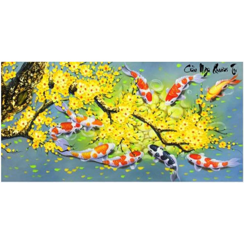 Tranh đính đá cửu ngư quần tụ fff466 100x50cm