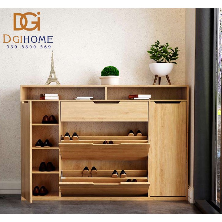 ️Liên hệ: Zalo 0395800569 Chất liệu: Gỗ công nghiệp MDF phủ melamin chống xước Phụ kiện: giá xoay bằng thép sơn tĩnh điện chống gỉ, bản lề inox chống gỉ. Cấu trúc: Gồm 2 tầng và 2 ngăn bên, mỗi tầng 3 ngăn, tủ có hậu rắn chắc. Hai ngăn bên phải được chia làm 4 tầng có thể để mũ bảo hiểm Sức chứa: 35 – 40 đôi giày/dép ( Sneakes,cao gót, giày tây, boots, dép…) Kiểu dáng sang trọng, độ bền cao. Không cong vênh, mối mọt.