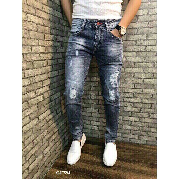 (vcbshop) Quần jean nam wash bạc ôm body 7594