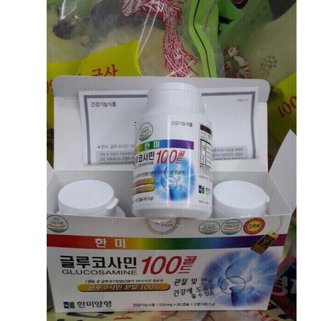 ️HỘP VIÊN UỐNG BỔ KHỚP GLUCOSAMINE HÀNG NỘI ĐỊA HÀN QUỐC 270 viên / hộp , dùng 3 tháng mới hết 1 hộp , ?0987489216, chất lượng tốt , giá đẹp mê??? ??Ship toàn quốc, sỉ , lẻ giá tốt nhất * Thành phần: Bột GLUCOSAMINE 100% Trình bày: Hộp gồm 03 lọ 90V x 550mg * Công dụng Viên bổ khớp GLUCOSAMINE hàn quốc: - Việc bổ sung GLUCOSAMINE không chị cũng cấp nguyên liệu cho quá trình tổng hợp và phục hồi Glycosaminoglycan ở sụn khớp mà nó còn cung cấp định dự cho sụn khớp. GLUCOSAMINE hầu như không có tác dụng phụ ngay cả khi dùng lâu dài. * GLUCOSAMINE giúp cải thiện tốt tình trạng viêm và đau khớp. _ Dùng tốt cho người bị bệnh thấp khớp, thoát vị đĩa đệm, bệnh gút, loãng xương. _ Phòng và hỗ trợ điều trị các bệnh đau lưng, thấp khớp, đau nhức xương khớp. _ Cũng cấp dinh dưỡng cho sụn, giúp tái tạo dịch khớp và sụn khớp. _ Kích thích tế bào sụn sản xuất Collagen, Proteoglycan là các chất căn bản của sụn khớp, ức chế các men phá hủy sụn, ức chế các yếu tố gây viêm.