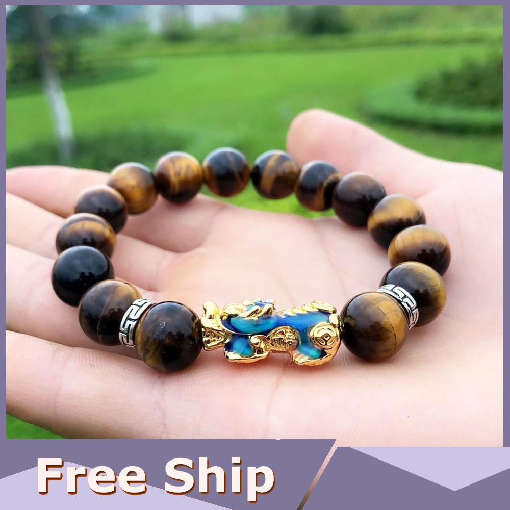 Vòng Tay Tỳ Hưu Vạn Sắc Đá Mắt Hổ Vàng Nâu