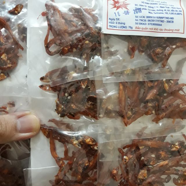 ️Cá dc sấy giòn, tẩm đường, ớt , tỏi, dầu ăn, mè rất thơm ngon có vị cay nhè nhẹ. Ăn được luôn mà không cần chế biến. 1 vỉ có 10 gói dc đóng gói cẩn thận đảm bảo vệ sinh an toàn thực phẩm. Hsd 6 tháng kể từ ngày sản xuất có in trên bao bì. Cơ sở chế biến : Đồng Sơn, Nam Trực, Nam Định *** Có thể ăn kèm cơm , chế biến như sau : phi hành tỏi cho thơm rồi cho cà chua vào, đảo qua 1 lượt rồi tiếp đó cho cá cơm, chút muối, chút mắm . Chuẩn bị tắt bếp thì cho hành lá , món cá cơm sốt cà chua ăn cực cuốn mồm ^^