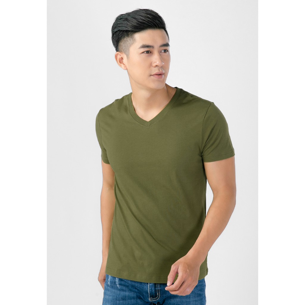 Áo thun nam cổ tim cao cấp thoát nhiệt nhật bản rêu - Áo ngắn tay không cổ