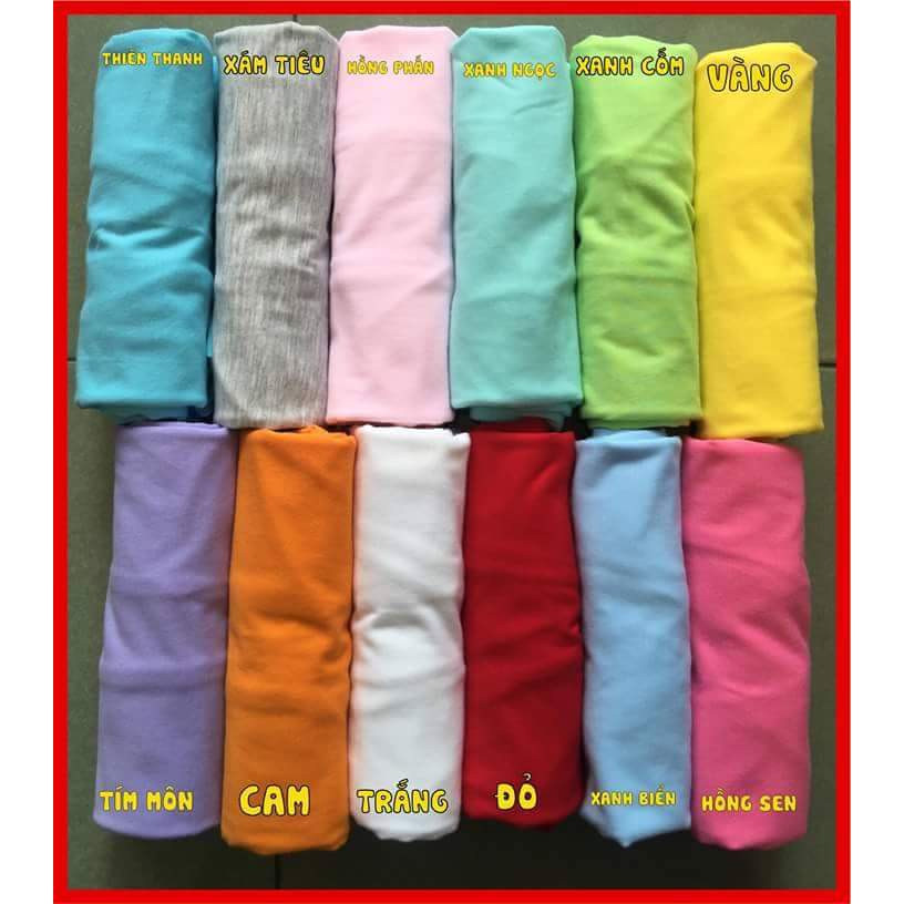 Size số 2: 5-10kg. Size số 3 : 12-15kg Size số 4: 17-22kg Size số 6: 24-30kg Size XS: 32-35kg. Size S: 37-47kg Size M : 48-53kg. Size L. : 54-57kg Size XL: 58-63kg. Size XXL : 64-67kg Size XXXL: 68-80kg - Gồm các màu : trắng, đỏ, vàng, cam, biển, xanh lá, hồng, tím môn... - Chất liệu coton mềm mịn in chuyển nhiệt không phai không tróc - Đổi trả nếu hàng lỗi do quá trình sản xuất - Nhận thiết kế áo lớp áo tập thể theo yêu cầu