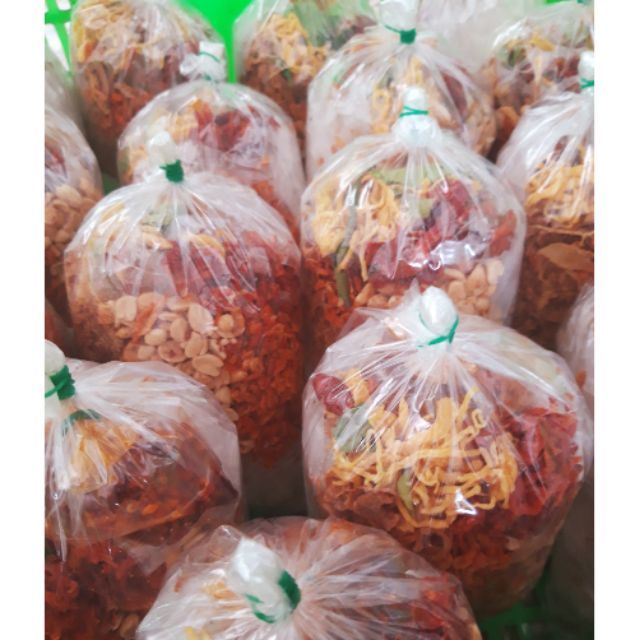 ️*Xin chao quý khách * Bánh trộn thập cẩm thành phần chính gồm: bánh tráng sợi, khô bò, khô gà, hành phi,đậu, tép sấy, sate,muối tôm,tắc.... Cách dùng : cho gia vị và trộn đều lên....là có ngay 1 bịch bánh tráng thơm ngon.. Hsd: 30 ngày. Đặc sản tây ninh Trúc Lam cung cấp sỉ và lẻ các loại bánh tráng thành phẩm và trộn các loại, muối tôm tây ninh chay mặn.... Hotline:0359444280 gặp Linh Zalo:0359444280