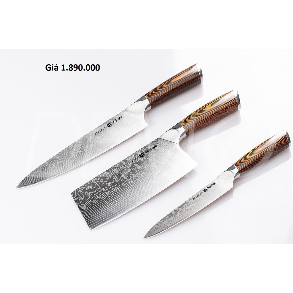 ️Bộ 3 dao bếp cán gỗ Nhật Bản TooSharp TS-7cr17 - Xuất xứ: Nhật Bản - Chất liệu: Thép không gỉ 7cr17Mov, cán gỗ tự nhiên - Chiều dài dao chặt 30cm, rộng 8cm - Chiều dài dao thái dài 34cm rộng 5cm - Chiều dài dao gọt hoa quả 25cm rộng 2,5cm - Thiết kế lưỡi dao gồm 3 lớp thép không gỉ dày 3mm làm chậm quá trình mài mòn dao trong quá trình sơ chế. Lưỡi dao cực sắc và bền đẹp tinh tế tạo ra nét sang trọng trong căn bếp của bạn. Phần cán gỗ giúp bạn cầm chắc tay và an toàn .Cán dao làm bằng gỗ tự nhiên không có các rãnh hở, hạn chế vi khuẩn xâm nhập. Dao bếp cán gỗ sẽ luôn sáng bóng và bền đẹp trong suốt thời gian dài sử dụng - Với độ sắc bén từ thép không gỉ, dao giúp bạn cắt các loại thực phẩm dễ dàng.