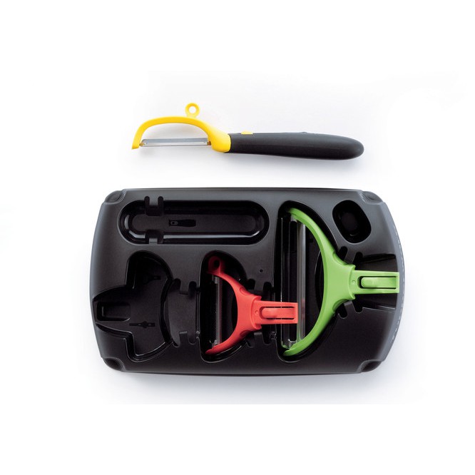 ️Kích thước: Hộp đựng: 22.7 cm (l) x 6.05 cm (H) x 14.19 cm (W) Dao gọt ngang có gắn cán: 13.88 cm (l) x 1.84 cm (H) x 6.89 cm (W) Dao gọt đứng có gắn cán: 16.29 cm (l) x 3.73 cm (H) x 2.71 cm (W) Dao gọt góc rộng có gắn cán: 14.86 cm (l) x 2.90 cm (H) x 10.25 cm (W) Ưu điểm và tiện ích: - Bộ dụng cụ gọt vỏ Click Series 3 món là một sản phẩm đột phá trong việc bào và gọt vỏ với 1 tay cầm và 3 đầu gọt có thể thay đổi linh hoạt - Đầu gọt có thể thay đổi chỉ trong 1 lần bấm.,1 tay cầm có thể sử dụng cho cả 3 đầu gọt, đơn giản, nhanh chóng và tiện lợi vô cùng - 3 đầu gọt: Đầu gọt đứng, đầu gọt ngang và đầu gọt góc rộng - Màu sắc bắt mắt giúp người dùng dễ dàng phân biệt - Đầu gọt đứng và đầu gọt ngang có cùng lưỡi dao giống như dao gọt vỏ thông dụng & có thêm móc tròn để lẫy các hốc mắt sâu trên trái cây - Lưu trữ dễ dàng không chiếm diện tích Công dụng: - Sử dụng đầu gọt đứng để gọt vỏ trái cây và rau củ vỏ cứng như khoai tây, táo, cà-rốt, hoặc dùng để bào vụn sô-cô-la và phô-mai như món Emmental và Parmesan. Sử dụng mắt-lẫy để lẫy các hốc sâu trên trái cây, rau củ - Sử dụng lưỡi răng cưa của đầu gọt ngang để gọt vỏ trái cây & rau củ mềm và trơn như cà chua, đào, ớt chuông, mận, mơ,… Sử dụng lưỡi phẳng để gọt vỏ các loại trái cây & rau củ vỏ cứng như khoai tây, táo, cà-rốt hoặc dùng để bào vụn sô-cô-la và phô-mai như món Emmental và Parmesan - Sử dụng đầu gọt góc rộng để thái lát hoặc bào mỏng rau củ quả to và dài, thích hợp làm các món như lasagna hoặc carpaccio,... Cách thao tác với đầu gọt góc rộng: - Đặt rau củ, trái cây lên thớt phía trước bạn - Cắt cuốn ở 2 đầu rau củ/ trái cây - Bắt đầu cắt lát: một tay giữ chặt rau củ/ trái cây cần cắt, 1 tay cầm dụng cụ gọt, sau đó đè và trượt dụng cụ gọt theo chiều ngang để cắt rau củ quả thành lát mỏng - Khi cắt lát đầu tiên, bạn lật rau củ lại để tạo mặt phẳng tiếp xúc chắc chắn trên mặt thớt. Sau đó, bắt đầu cắt lát mặt còn lại Cách bảo quản: - Rửa và hong khô sản phẩm trước khi sử dụng lần đầu - Tất cả phụ kiện của bộ gọt vỏ Click Series (3) đều sử dụng an toàn trong máy rửa chén. (Lưu ý, chỉnh chế độ nhiệt trung bình cho máy rửa chén để tiết kiệm năng lượng và bảo vệ môi trường) - Luôn đảm bảo đầu gọt gắn chặt vào cán dao khi sử dụng và giữ các ngón tay xa lưỡi dao để tránh bị thương - Chỉ sử dụng đầu góc rộng để cắt hoặc bào mỏng các loại rau củ dài và to - Luôn đặt thức ăn cần gọt nằm ngang thớt hoặc mặt bàn. Không nên giữ thức ăn trên cao để gọt bằng đầu góc rộng - Vì khoảng cách giữa các lưỡi dao góc rộng lớn nên thích hợp để bào lát mỏng. Dùng gọt vỏ sẽ giảm công năng - Để xa tầm với của trẻ em.