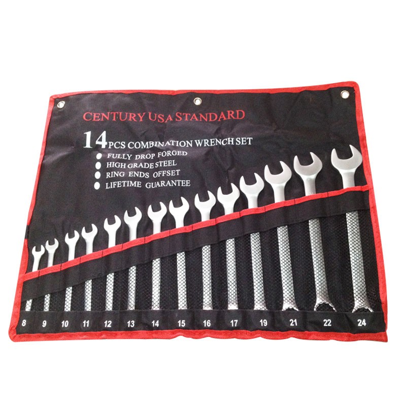 ️- Xuất xứ: Trung Quốc - Chất liệu: Thép cao cấp, độ cứng cao - Thiết kế: Tinh tế, tiện dụng - Qui cách: Hệ mét 8, 9, 10, 11, 12, 13, 14, 15, 16, 17, 19, 21, 22, 24mm - Khóa vòng miệng là 1 trong số các loại dụng cụ cầm tay rất cần thiết cho công việc tu sửa máy móc, lắp đặt các thiết bị nhà xưởng...Các bạn thử nghĩ xem, nếu mình cần tháo ráp 1 vài chi tiết nào đó trên xe gắn máy của mình mà chỉ có 1 hoặc 2 cây vòng miệng trong thùng đồ nghề thì thật khó khăn để thực hiện việc sửa chữa này. Đôi khi chúng ta có thể sửa chữa một vài hỏng hóc nho nhỏ với vài vòng miệng thông dụng, việc này sẽ giúp chúng ta giảm thiểu chi phí. - Để đáp ứng được nhu cầu cần thiết đó, chúng tôi xin giới thiệu đến quý khách hàng Bộ vòng miệng 14 cây 8--24mm CENTURY. - Bộ vòng miệng 14 cây CENTURY bao gồm các số từ 8mm --> 24mm, được chế tạo bằng thép tốt, cao cấp, có độ cứng và chịu lực cao. Bên cạnh đó, mỗi cây vòng miệng đều được phủ 1 lớp xi cao cấp chóng gỉ sét, có độ mờ trông khá đẹp mắt. - Các chi tiết được thiết kế rất tinh xảo, và chính xác từng milimet. Do đó, các bạn không cần phải lo đến việc dùng nhằm các loại hàng kém chất lượng rồi kết quả làm hư tổn đến ốc bu lông mà các bạn cần siết với 1 lực mạnh. - Ngoài kiểu dáng và chất lượng được chế tạo theo tiêu chuẩn Mỹ, thì bộ vòng miệng này còn được tặng kèm 1 túi vải treo, với những đường may tỉ mỹ và đẹp mắt. Trên túi vải, nhà sản xuất đã may sẵn 14 cái túi nhỏ để chứa 14 cây vòng miệng từ nhỏ đến lớn. Và thật tiện lợi hơn nữa là trên đó còn in thêm số của mỗi size vòng miệng từ 8 đến 24, việc này giúp chúng ta không cần phải tìm kiếm size mà mình cần sử dụng. - Sản phẩm gồm 14 cây vòng miệng: 8, 9, 10, 11, 12, 13, 14, 15, 16, 17, 19, 21, 22, 24mm * LƯU Ý: 1 x Bộ sản phẩm vòng miệng 14 cây Century ; 1 x Túi vải treo #cole #bocole #donghe #suachua #dungcu