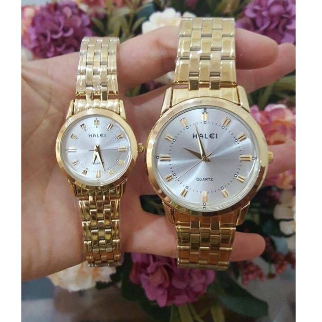 Cặp Đồng hồ đôi Halei máy Nhật mạ vàng không gỉ chống nước, chống xước.