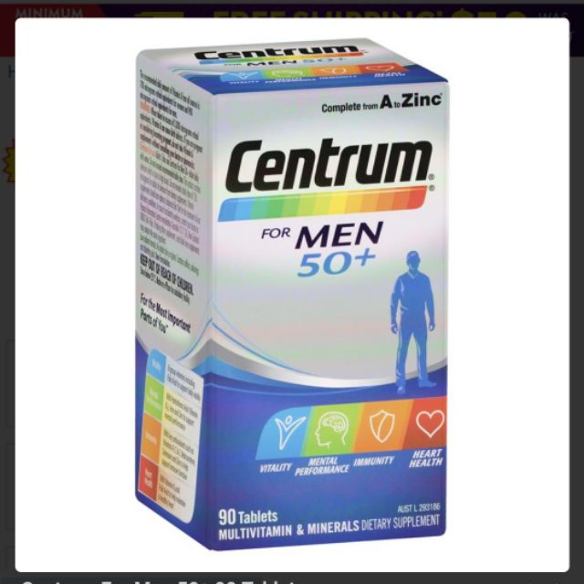 ️Centrum For Men 50+ vitamin tổng hợp và khoáng chất hoàn chỉnh từ A đến Kẽm và hỗ trợ sức sống, hoạt động tinh thần, miễn dịch và sức khỏe tim mạch Đối với những phần quan trọng nhất của bạn. Sức sống. Vitamin nhóm B bao gồm axit Folic để hỗ trợ sức sống hàng ngày. Thực hiện tinh thần. Với axit Pantothenic (Vitamin B5), Sắt và Kẽm để hỗ trợ hiệu suất tinh thần. Miễn dịch. Các chất chống oxy hóa chính như Vitamin A, C & E, Betacarotene, Zinc & Selenium giúp hỗ trợ chức năng miễn dịch. Sức khỏe tim mạch. Với Vitamin B6 và Axit Folic giúp duy trì một trái tim khỏe mạnh. Thích hợp cho: Nam 50+ Nội dung đóng hộp: 90 viên Kích thước: 90 Gói Nam giới