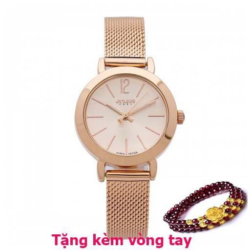 ️THÔNG SỐ SẢN PHẨM Thương hiệu: JULIUS Mã sản phẩm: JA-732 JU970 (Đồng),Vàng,Bạc Dành cho: Nữ, sinh viên, nhân viên văn phòng, doanh nhân… Chất liệu dây: Dây thép không gỉ Chất liệu mặt kính: Mặt kính khoáng cao cấp trong suốt rõ nét, độ cứng cao (chống va đập tốt ở mức sinh hoạt hàng ngày) Kích thước bề mặt: 2,8cm (Mặt tròn) Độ dày: 0,9cm Độ rộng của dây: 1,2cm Kiểu khóa: Nút gài Chất liệu vỏ máy: Hợp kim mạ ion vàng hồng, sử dụng công nghệ mạ IP chân không tiên tiến giúp đem lại độ sáng bóng và bền màu Máy: Quartz Nhật MIYOTA (sản xuất bởi Citizen Nhật Bản) Khả năng chịu nước: Chống thấm nước 3ATM (30m) có thể đi mưa, rửa tay, rửa mặt. Tránh tiếp xúc với môi trường hóa chất như giặt đồ, tấm gội. Bảo hành: 12 tháng, hậu mãi 3 năm chi phí thấp sau bảo hành. Đổi mới nếu bị vô nước hoặc lỗi do nhà sản xuất. Thay dây miễn phí 1 lần, thay pin trọn đời, mua phụ kiện giá ưu đãi khi có thẻ bảo hành hàng y hình,cao cấp.