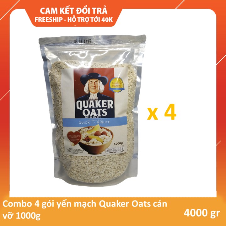 Combo 4 kg Yến mạch Quaker Oats cán vỡ