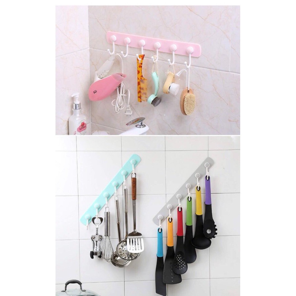 ️Với không gian sống đô thị chật hẹp như hiện nay, rất nhiều người băn khoăn làm sao để cải thiện không gian sống nhà mình thêm thoáng đãng và tiện dụng. Không chỉ phòng khách hay phòng ngủ, không gian phòng tắm cũng đòi hỏi phải được trang trí thật hợp lý và có tính thẩm mỹ cao nhằm đáp ứng nhu cầu sử dụng tối đa cũng như tạo dựng một ngôi nhà ngăn nắp gọn gàng dù diện tích khiêm tốn. MÓC TREO ĐỒ DÙNG NHÀ BẾP PHÒNG TẮM là một lựa chọn đúng đắn cho bạn Kích thước : 40 cm x 8 cm Chất liệu nhựa cao cấp Màu sắc: xanh, ghi, hồng
