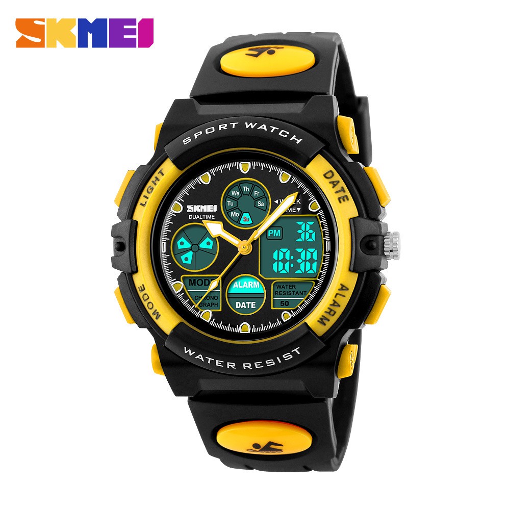 ️Thương hiệu: Skmei Chính Hãng Kiểu máy: Quartz Nhật Dành cho: Trẻ em Chất liệu vỏ: Cao Su và Nhựa Chất liệu mặt trước: Nhựa cứng Chất liệu dây: Cao su mềm, êm tay Mặt kính: Phẳng Kích thước mặt: 44mm - 48mm (Luôn vành không tính mấu gắn dây) Kích thước dây: 20mm Độ dày mặt: 18mm Độ dày dây: 2mm Tổng chiều dài: 24mm Thu dây: Nhỏ nhất 160mm Số kim: 3 kim + Xem giờ / phút điện tử Số lịch: Lịch ngày / tháng điện tử Độ chịu nước: Chịu nước tốt; tránh các hoạt động bơi lội Năng lượng sử dụng: Pin chuẩn