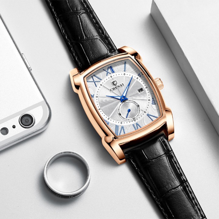 ️➥ THÔNG SỐ KỸ THUẬT ✔ Thương hiệu: CHENXI ✔ Kiểu máy: Quartz ✔ Dành cho: Nam ✔ Chất liệu vỏ: Thép không gỉ ✔ Chất liệu mặt trước: Kính cứng chịu lực ✔ Chất liệu dây: Dây da cao cấp ✔ Kích thước mặt: 38mm ✔ Độ dày mặt: 10mm ✔ Số kim: 3 có lịch ✔ Kích thước dây: 25,5mm ✔ Độ chịu nước: 30M ✔ Năng lượng sử dụng: Pin ✔ Bảo hành: Bảo hành điện tử 12 tháng ➥ GỢI Ý SỬ DỤNG VÀ BẢO DƯỠNG ❌ Nên tránh: - Va chạm và tiếp xúc với chất ăn mòn, nhiệt độ cao hoặc từ trường mạnh. - Sử dụng bất kì dung môi, chất làm sạch, chất tẩy công nghiệp, chất dính, sơn hoặc các chất xịt mỹ phẩm. - Đeo đồng hồ cùng các vòng đeo tay vì dễ tạo vết xước hay làm hỏng mặt đồng hồ. - Chỉnh nút chỉnh giờ khi đồng hồ bị ướt. - Để đồng hồ nơi nhiệt độ thay đổi đột ngột. - Sử dụng, nhấn các nút hoặc cài đặt ở dưới nước. ☑ Nên làm: - Làm sạch đồng hồ theo định kỳ vải mềm hơi ẩm để gia tăng tuổi thọ đồng hồ. - Thay pin khi đồng hồ chạy sai giờ hoặc chuyển động kim giây không đều vì rò rỉ điện do pin chết có thể gây ra hỏng hóc nghiêm trọng cho đồng hồ. - Tắt nguồn khi không được sử dụng trong thời gian dài, để kích hoạt công tắc bảo quản nguồn đặc biệt và tránh hao pin. ➥ CAM KẾT MUA HÀNG ✔ Sản phẩm phân phối chính hãng, nói không với hàng giả hàng nhái ✔ Hoàn tiền 500% nếu phát hiện sản phẩm không như cam kết ✔ Bảo hành 12 tháng, hỗ trợ đổi trả sản phẩm trong 7 ngày với mọi lỗi từ nhà sản xuất ✔ Luôn đi kèm bộ quà tặng cao cấp và các chương trình khuyến mãi tri ân khách hàng #dongho #đồnghồ #đồnghồdâyda #đồnghồdâydanam #đồnghồnam #donghonam