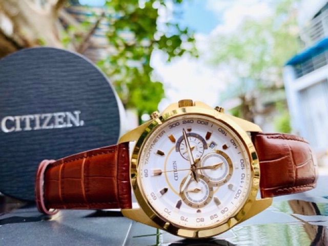 ️⌚️#Citizen #AN8043-05A Với Thiết kế #Chronograph - cùng tone vàng làm tăng thêm vẻ sang trọng và lịch lãm - tuy nhiên vẫn giữ vẻ khỏe khoắn thể thao - Chống nước: 5ATM (50m) - Size: 42mm, máy pin - Chất liệu vỏ: Thép chống gỉ Mạ Vàng PVD sang trọng - Kính: Mineral Crystal (cứng) ❌Giá gốc ~5 triệu, fullbox tag chính hãng 100%, test thoải mái ➥ Phụ kiện: fullbox, pin, tag ➥ Hàng ở ngoài đẹp hơn hình hen. ➥ Cam đoan ➥ chính hãng. Mới 100%. No fake. -------------- THÔNG SỐ KỸ THUẬT ➥ Thương hiệu: CITIZEN ➥ Model Number: AN8043-05A ➥ Kiểu mặt: tròn ➥ Khóa: Khóa cài ➥ Mặt hiển thị: Analog ➥ Chất liệu mặt: Mineral ➥ Kích thước mặt: 42mm (luôn viền) ➥ Độ dày case: 12mm ➥ Chất liệu viền ngoài mặt: Thép không gỉ ➥ Chất liệu dây: Da ➥ Độ rộng dây: 20mm ➥ Độ dài dây: Tiêu chuẩn vòng tay nam ➥ Màu dây: Nâu ➥ Màu mặt: Trắng ➥ Kiểu máy: Quartz (Nhật) ➥ Chịu nước: 5ATM ➥ Bảo hành: 12 tháng ➥ Xuất xứ: Nhật -------------- ➥ Vì là hàng on sale, số lượng ít nên vui lòng inbox để check kho TRƯỚC KHI ĐẶT HÀNG, sms/viber/zalo/inbox: 0938791001 (ms.Tiên) SHOP CAM KẾT ➥ Tất cả sản phẩm đều là CHÍNH HÃNG 100%, bao check trên mọi phương diện. ➥ Hình ảnh CHÂN THỰC, sản phẩm Y HÌNH (Màu sắc có thể chênh lệch đậm nhạt đôi chút do chụp bằng ĐT và ánh sáng khi chụp) #tingoshop #donghonu #donghothoitrang #donghoxachtay #donghochinhhang #donghocaocap #donghonam #donghosale #donghohanghieu