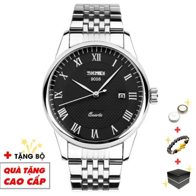 đồng hồ nam dây trắng mặt đen thương hiệu skmei nổi tiếng