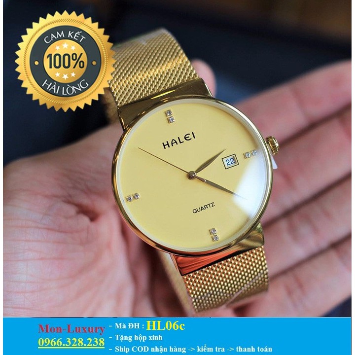 ️Đồng Hồ Nam HALEI 602 Dây Lưới Đẳng Cấp Sang Trọng ❤ Mô tả Sản phẩm ✅ Loại sản phẩm: Quartz ✅ Kiểu dáng: Nữ - Nam +Size mặt nam 40mm - kích thước dây 20mm +Nữ size mặt 26 - kích thước dây 14mm ✅ Chất liệu vỏ: Thép không gỉ ✅ Chất liệu mặt trước: Mineral - Kính cứng ( chống trầy khá tốt và chịu lực nhẹ) ✅ Số kim: 3 kim ( Giờ - phút – giây) ✅ Năng lượng sử dụng: Pin ✅ Độ chịu nước: 3ATM, Chịu nước ở mức rửa tay , rửa mặt , đi mưa nhẹ. Trách tiếp xúc với hóa chất như xà phòng, nước rửa chén,nước tẩy, sữa tắm, tránh đi mưa lâu, không mang khi bơi lội ✅ Bảo hành: 6 tháng ( Phí ship đi về Shop chịu nếu hàng lỗi ạ) ❤ MonLuxury Shop : =>>> Các sản phẩm khác tại https://shopee.vn/mon.luxury ✅ Sỉ & lẻ đồng hồ ! Hàng thời trang cao cấp & cực bền . ✅ Bên mình chỉ bán hàng online không có bày gian hàng đâu ạ, vì bán online nên giá cả rất cạnh tranh ạ ➥ Hàng nhập hoặc được lấy từ các xưởng gia công tại Việt Nam , nhập Hongkong và Quảng Châu ✅ Tất cả sản phẩm của shop đều 100% ảnh thật và hàng thật như ảnh ạ ➥ Nếu khách nhận hàng ko ưng vì ko như ảnh hay chất lượng kém , khách cứ inbox shop nhé, shop cam kết sẽ nhận lại hàng và hoàn tiền cho khách ạ ➥ ( Khách nếu lo lắng có thể vào shop mình xem mục đánh giá , feedback ạ ) ❤ Ưu đãi đặc biệt cho khách quen : Shop còn có ưu đãi cho khách hàng khi mua hàng lần 2 tại shop : giảm ngay 10-15% giá trị đơn hàng nếu khách đã mua hàng lần 1 và hài lòng với chất lượng sản phẩm của shop, click theo dõi shop và đánh giá 5* cho sản phẩm của shop nhé ! ❤️➥ ❤ Về quy Định Bảo hành: đổi trả trong 7 ngày nếu hàng bị lỗi do nhà sản xuất như là hết pin, rớt kim, hư khóa, đồng hồ không chạy. Bảo hành pin và máy trong 3 tháng . Bị bất cứ vấn đề gì bạn cứ inbox shop sẽ luôn tư vấn và hỗ trợ bạn ❤ Về size , dây đồng hồ phù hợp cho khách : Tất cả đồng hồ tại shop khách đều có thể cắt ( gỡ mắt) cho vừa với tay khách nhé . Nếu không tự làm ở nhà được thì khách có thể mang ra quầy đồng hồ gần nhất, thợ sẽ cắt cho khách. Phí tầm 10k VND thôi ạ ❤Tks #đồnghồnam #khuyếnmãi #yêuthích #thờitrangnam #chinhhang #giárẻ #vongtay #donghocatinh #donghonu #donghochongnuoc #donghothoitrang #donghodep #donghothethao #phukien