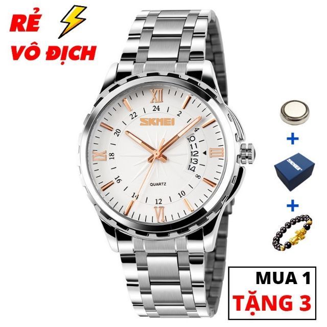 ️THÔNG TIN SẢN PHẨM - Tình trạng: Mới - Nguồn gốc: Hàng công ty - Kích thước mặt đồng hồ: 40mm - Kích thước dây đồng hồ: 22mm - Chống nước: Thấp nhất 3ATM( Đi mưa và rửa tay thoải mái) - Bảo hành: 6 tháng - Loại: Dùng kim quay hiển thị - Chất liệu mặt : Kinh cao cấp chống xước - Chất liệu vỏ: Thép không gỉ cao cấp - Năng lượng sử dụng; Pin ------------------------------------------------ GỢI Ý SỬ DỤNG VÀ BẢO DƯỠNG Nên tránh: - Va chạm và tiếp xúc với chất ăn mòn, nhiệt độ cao hoặc từ trường mạnh. - Sử dụng bất kì dung môi, chất làm sạch, chất tẩy công nghiệp, chất dính, sơn hoặc các chất xịt mỹ phẩm. - Đeo đồng hồ cùng các vòng đeo tay vì dễ tạo vết xước hay làm hỏng mặt đồng hồ. - Chỉnh nút chỉnh giờ khi đồng hồ bị ướt. - Để đồng hồ nơi nhiệt độ thay đổi đột ngột. - Sử dụng, nhấn các nút hoặc cài đặt ở dưới nước. Nên làm: - Làm sạch đồng hồ theo định kỳ vải mềm hơi ẩm để gia tăng tuổi thọ đồng hồ. - Nếu xuất hiện hơi nước ngưng tụ, cần mang đồng hồ đến Trung Tâm Dịch Vụ Khách Hàng của các hãng càng nhanh càng tốt để giảm thiểu hư hỏng bên trong. - Thay pin khi đồng hồ chạy sai giờ hoặc chuyển động kim giây không đều vì rò rỉ điện do pin chết có thể gây ra hỏng hóc nghiêm trọng cho đồng hồ. - Tắt nguồn khi không được sử dụng trong thời gian dài, để kích hoạt công tắc bảo quản nguồn đặc biệt và tránh hao pin. Đây là chiếc đồng hồ hoàn hảo là món phụ kiện lý tưởng giúp bạn hoàn thiện phong cách của chính mình. -------------------------------------------------------------------------------- Sản phẩm được phân phối bởi Công ty TNHH CP SKMEI Đảm bảo hàng chất lượng, giống hình ảnh. Đổi trả hàng và hoàn tiền trong vòng 7 ngày. ➥ Shop ưu đãi giảm 30k cho khách mua hàng lần 2 nếu khách đánh giá 5* khi mua hàng lần 1 ➥ Tất cả đồng hồ ở shop đều có hộp và thẻ bảo hành của công ty. ➥ Tặng kèm pin( áp dụng từ ngày 01/11/2016) Thanks you! ---------------------------------------------- Xu hướng của năm:#đồnghồnam #khuyếnmãi #yêuthích #thờitrangnam #chinhhang #giárẻ #vongtay #donghocatinh #donghonu #donghochongnuoc #donghothoitrang #donghodep #donghothethao #phukien