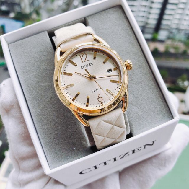 ️Citizen FE6082-08P này xinh quá, dây da trần trám quá sang vs thanh lịch ➥ size 36mm ➥ Mặt khắc vi tính tinh xảo sắc nét ➥ Pin eco- drive năng lượng mặt trời, không lo hết pin lun ➥ Màu be như vầy lên tay nịnh da lắm đó mấy chị ❌❌ Giá gốc tầm 7 triệu, canh sale sốc, fullbox tag chính hãng Mỹ bao test fake đền 10 lần ạ ➥ Phụ kiện: fullbox, pin, tag ➥ Hàng ở ngoài đẹp hơn hình hen. ➥ Cam đoan ➥ chính hãng. No fake. Bao test -------------- THÔNG SỐ KỸ THUẬT ➥ Thương hiệu: CITIZEN ➥ Model Number: FE6082-08P ➥ Kiểu mặt: tròn ➥ Khóa: Khóa cài ➥ Mặt hiển thị: Analog ➥ Chất liệu mặt: Mineral ➥ Kích thước mặt: 36mm (luôn viền) ➥ Độ dày case: 9mm ➥ Chất liệu viền ngoài mặt: Thép không gỉ ➥ Chất liệu dây: Da ➥ Độ rộng dây: 16,2mm ➥ Độ dài dây: Tiêu chuẩn vòng tay nữ ➥ Màu dây: Trắng ➥ Màu mặt: Beige ➥ Kiểu máy: Quartz (Nhật) ➥ Chịu nước: 3ATM (rửa tay, đi mưa thoải mái) ➥ Bảo hành: 12 tháng ➥ Xuất xứ: Mỹ -------------- ➥ Vì là hàng on sale, số lượng ít nên vui lòng inbox để check kho, hãy sms/viber/zalo/inbox: 0938791001 (ms.Tiên) TINGO SHOP CAM KẾT ➥ Tất cả sản phẩm đều là CHÍNH HÃNG 100%, bao check trên mọi phương diện. ➥ Hình ảnh CHÂN THỰC, sản phẩm Y HÌNH (Màu sắc có thể chênh lệch đậm nhạt đôi chút do chụp bằng ĐT và ánh sáng khi chụp) #tingoshop #donghonu #donghothoitrang #donghoxachtay #donghochinhhang #donghocaocap #donghonam #donghosale #donghohanghieu #citizen #ecodrive #donghocitizen #donghocitizenchinhhang