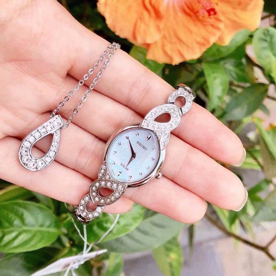 ️Đồng hồ nữ Seiko SUP367 chính hãng - tặng vòng cổ Swarovski Thông số kỹ thuật: Thương Hiệu: SEIKO - Nhật Bản Model: Sup367 Xuất xứ : Nhật Bản Dòng sản phẩm : Solar Chất liệu kính : Kính cường lực Chất liệu vỏ : Thép không rỉ đính đá Chất liệu dây đeo : Dây thép không gỉ Khả năng chịu nước: 5ATM (50m) Kích thước vỏ (mm): 20.5 x 7 (mm) Tính năng: Xem giờ Năng lượng: Ánh sáng Khuyến mãi: Giảm 10% + tặng một dây truyền bạch kim đính pha lê. Độ chính xác: ( + - ) 2 giây/ Năm Kiểu dáng : Nữ Màu sắc Mặt xà cừ, dây trắng bạch kim Bảo hành : 24 tháng Kích thước dây : 8mm Địa chỉ : P602 HH3A, chung cư Linh đàm, đường Linh đường, Hoàng Liệt, Hoàng Mai, Hà Nội Tư vấn viện : Hạnh (0902.999.126) #donghocasio #donghonam #donghodeotay