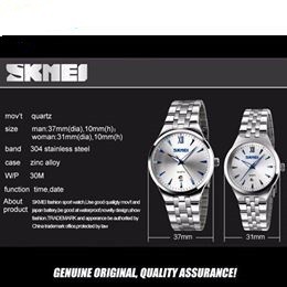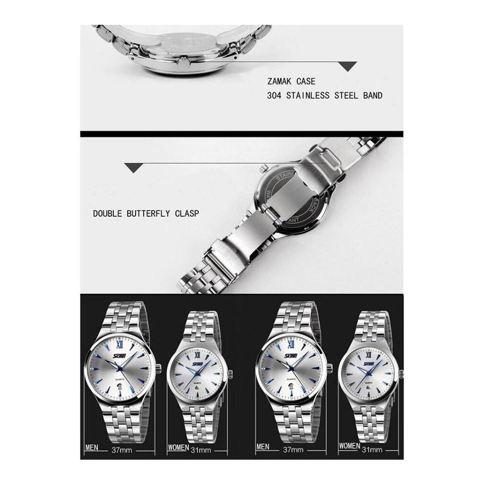------------------------ THÔNG TIN CHI TIẾT Xuất xứ: HongKong Kiểu máy: Quartz Dành cho: Nữ Chất liệu vỏ: Thép không gỉ Chất liệu si: Không si Chất liệu mặt trước: Kính cứng pha khoáng chống trầy nhẹ, hạn chế va đập Chất liệu mặt sau: Thép không gỉ Chất liệu dây: Thép không gỉ Vành đồng hồ: Trơn Mặt kính: Phẳng, có zoom ngày Loại mặt: Có lịch, không số Kích thước mặt: Nam 4cm - Nữ 3cm Kích thước dây: Nam 0.8cm - Nữ 0.7cm Thu dây: Nam 17-24cm - Nữ 16-23cm Độ dày mặt: Nam 0.8cm - Nữ 0.7cm Độ dày dây: Nam 0.35cm - Nữ 0.3cm Tổng chiều dài: Nam 24cm - Nữ 23cm Cân nặng: Size Nam 100cm - Size Nữ 80cm Số kim: 3 kim Số lịch: 1 lịch ngày Độ chịu nước: Chống nước sinh hoạt rất tốt; tránh các hoạt động bơi lội Năng lượng sử dụng: Pin chuẩn Bảo hành: 3 tháng, có kèm phiếu bảo hành. BỘ SẢN PHẨM BÁN CHUẨN GỒM - 1 Đồng hồ Nam Skmei Chính Hãng - 1 Hộp đựng đồng hồ - 1 Phiếu bảo hành ----------------- CAM KẾT Mang đến cho khách hàng sự hài lòng nhất khi mua sắm tại SHOP Nội dung mô tả sản phẩm CHI TIẾT NHẤT và CHÂN THẬT NHẤT Hình ảnh CHÂN THỰC về sản phẩm Chế độ hẫu mãi và chăm sóc mang lại sự hài lòng sau khi mua sắm Chế độ bảo hành đầy đủ như môt tả sản phẩm.