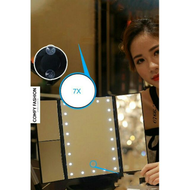 ️Gương trang điểm thế hệ mới, giúp bạn nữ làm đệp bất chấp mọi điều kiện khi không đủ ánh sáng. Hãy yên tâm, giờ đây đã có loại gương trang điểm đèn led cảm ứng zoom 3 lần làm đẹp điều chỉnh ánh sáng 360 độ. Màu sắc: KEM ( Y HÌNH VIDEO ) Nút cảm biến đèn led, sử dụng bằng pin AA Hiện đại, không tốn điện, dễ sử dụng, vừa trang trí vừa tiện nghi di chuyển gương