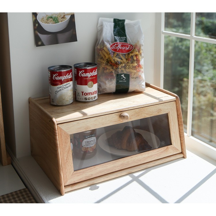 ️KỆ ĐỰNG GIA VỊ BẰNG GỖ CÓ NẮP KÍNH - A BREAD CASE - GỖ TỰ NHIÊN - Chất liệu: Gỗ thông NewZealand - Kích thước: 41x28x20 cm - Màu sắc: Gỗ tự nhiên