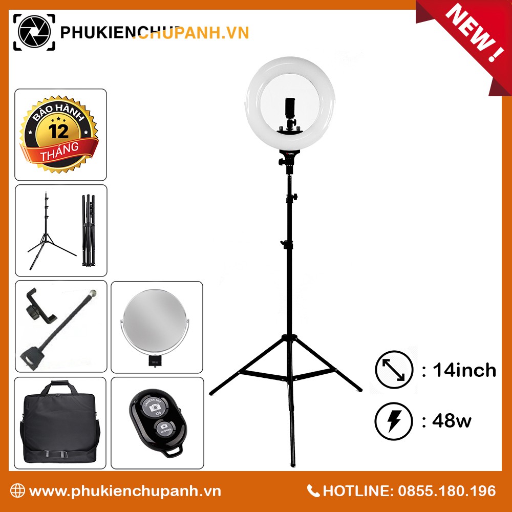 ️MÔ TẢ SẢN PHẨM - Thương hiệu: SLOP - Công suất lớn nhất 80w, kích thước vòng LED: 18 inch (46cm) - 2 núm điều chỉnh cường độ sáng, hỗ trợ 2 nguồn ánh sáng: ánh sáng trắng và ánh sáng vàng - Chân đế có thể điều chỉnh độ cao, khung thép mạ tĩnh điền, bán kính lớn và chắc chắn. - Sản phẩm bao gồm: Chân đế và vòng LED sáng - Sản phẩm chính hãng và bảo hành 1 năm. - Tuổi thọ lên đến 40000 giờ BỘ SẢN PHẨM BAO GỒM 1/ Led ring 14 inch – 48W 2/ Tripod 3/ Giá đỡ điện thoại 4/ Gương trang điểm 5/ Dây nối 6/ Túi đựng và hộp ĐẶC ĐIỂM SẢN PHẨM #Sản_phẩm_studio_không_thể_thiếu #Đèn_livestream Tolifo là bộ sản phẩm được thiết kế hoàn hảo dành cho công việc nhiếp ảnh, chụp chân dung, livestream, quay video youtube, vlogs và các hoạt động tại beauty salon. Bộ kit tích hợp vòng đèn led 14inch, chân đế, giá đỡ điện thoại thông minh và cả gương trang điểm cung cấp khung nền hoàn hảo và tinh tế. Đèn livestream Tolifo 2in1 14inch không chỉ là nguồn cung ánh sáng, công dụng mà nó mang lại còn nhiều hơn thế nữa. #Công_nghệ_tiên_tiến Công nghệ LED 2019 được trang bị trên đèn livestream Tolifo giúp làm tăng hiệu năng sử dụng, kéo dài tuổi thọ sản phẩm lên tới hàng chục ngàn giờ hoạt động. Ngoài nguồn điện trực tiếp, có thể dùng nguồn pin dự phòng. Thiết kế trực quan, thân thiện giúp đễ dàng cài đặt và sử dụng. Các công tắc cho phép mở nguồn, thay đổi cường độ sáng và nhiệt độ màu. Phần chân đế tripod của sản phẩm đèn livestream Tolifo 14inch được là từ chất liệu ABS cao cấp. Khi cần, bạn có thể tùy ý điều chỉnh độ dài, gấp gọn đặt trong túi xách và di chuyển. #Nguồn_sáng_vượt_trội Đèn livestream Tolifo cung cấp chùm ánh sáng nhẹ nhàng và sắc nét. Thang nhiệt độ màu dao động từ 3200k – 5600k cho ánh sáng màu trắng, vàng và trung tính. Ngoài ra, độ sáng của đèn livestream trợ sáng Tolifo 2in1 14inch cũng có thể thay đổi từ 10 – 100% tùy mục đích sử dụng. THÔNG TIN BẢO HÀNH – Sản phẩm cam kết chính hãng với tiêu chuẩn chất lượng cao – Bảo hành 12 tháng chính hãng, hỗ trợ lỗi 1 đổi 1