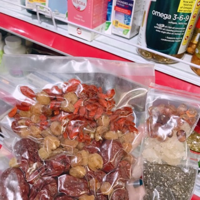 ️Nguyên liệu gồm: * Nhựa đào * Tuyết yến sợi loại ngon * Táo đỏ * Kỷ Tử * Hạt chia * Nhãn nhục Khách có thể mua thêm hạt sen để vào cho ngon. Do hạt sen đang hết mùa nên e ko cho vào sét nữa. **** Cách nấu - Nhựa Đào và Tuyết Yến ngâm riêng từ 8-10 tiếng cho nở. - Rửa sơ nhãn nhục, kỷ tử, táo đỏ trước khi nấu - Hạt chia ngâm riêng cho nở trước khi nấu - Lá dứa và đường phèn khách tự chuẩn bị ạh Chuẩn bị từ 2 - 3 lít nước nấu sôi ( nếu có hạt sen cho vào nấu trước cho mềm ). Kế tiếp cho nhãn nhục vào nấu khoảng 10 phút. Lần lượt cho nhựa đào, tuyết yến, kỷ tử, táo đỏ cắt đôi, lá dứa vào. Nêm cho vừa ăn. Đun sôi thêm 5 phút nữa rồi tắt bếp. Để nguội rồi cho hạt chia vào. Ngon hơn khi dùng lạnh *** Bảo quản trong tủ lạnh từ 2-4 ngày. #cheduongnhan, #setchetuyetyen, #chengon, #chechatluong, #cheantoan, #chenhuadao, #chetuyetyen#cheduongnhanbaongon #Chenhuadaotuyetyen #cheduongnhansieungon