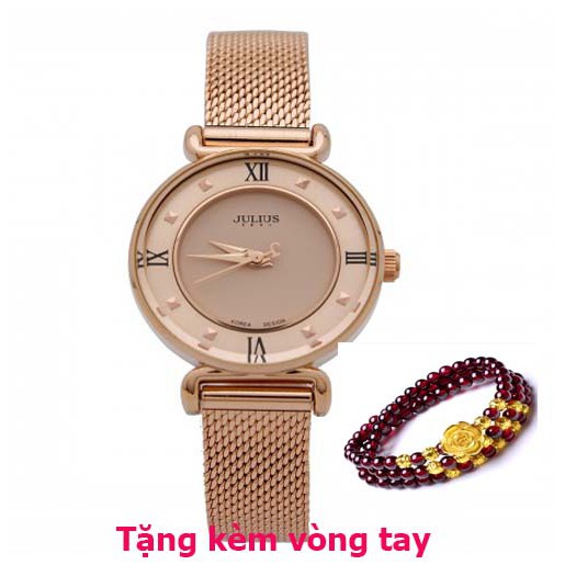 ️THÔNG SỐ SẢN PHẨM Thương hiệu: JULIUS Mã sản phẩm: JA-728 JU964 (Vàng),Bạc,Đồng Dành cho: Nữ, sinh viên, nhân viên văn phòng, doanh nhân… Chất liệu dây: Dây thép không gỉ Chất liệu mặt kính: Mặt kính khoáng cao cấp trong suốt rõ nét, độ cứng cao (chống va đập tốt ở mức sinh hoạt hàng ngày) Kích thước bề mặt: 3cm (Mặt tròn) Độ dày: 0,7cm Tổng độ dài đồng hồ: 24cm Kiểu khóa: Nút gài Chất liệu vỏ máy: Hợp kim mạ ion vàng, sử dụng công nghệ mạ IP chân không tiên tiến giúp đem lại độ sáng bóng và bền màu Máy: Quartz Nhật MIYOTA (sản xuất bởi Citizen Nhật Bản) Khả năng chịu nước: Chống thấm nước 3ATM (30m) có thể đi mưa, rửa tay, rửa mặt. Tránh tiếp xúc với môi trường hóa chất như giặt đồ, tấm gội. Bảo hành: 12 tháng, hậu mãi 3 năm chi phí thấp sau bảo hành. Đổi mới nếu bị vô nước hoặc lỗi do nhà sản xuất. Thay dây miễn phí 1 lần, thay pin trọn đời, mua phụ kiện giá ưu đãi khi có thẻ bảo hành Hàng chính hãng.