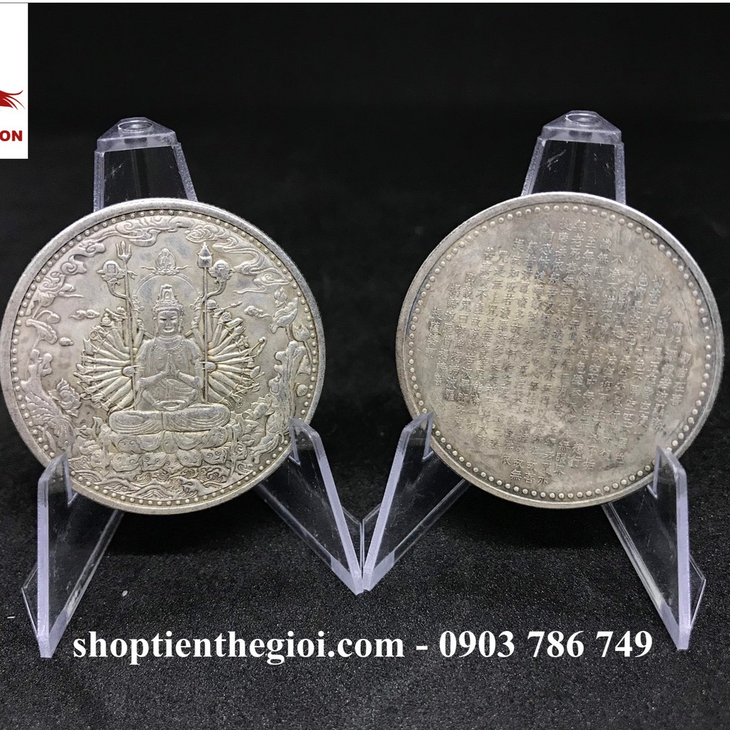 ️[SIÊU RẺ] Xu Lưu Niệm Hình Quán Thế Âm Bồ Tát Nghìn Mắt Nghìn Tay Mạ Bạc Không Gỉ - TMT Collection - MB100K [SIÊU RẺ] Xu Lưu Niệm Hình Quán Thế Âm Bồ Tát Nghìn Mắt Nghìn Tay Mạ Bạc Không Gỉ - TMT Collection - MB100K [SIÊU RẺ] Xu Lưu Niệm Hình Quán Thế Âm Bồ Tát Nghìn Mắt Nghìn Tay Mạ Bạc Không Gỉ - TMT Collection - MB100K Xu Kỷ Niệm Quán Thế Âm Bồ Tát Mạ Bạc Đường kính xu 38mm Dày 3mm Nặng 27gr Chất Liệu Đồng Thau Mạ Bạc Không có ốp nhự OPP Mặt trước hình Quán Thế Âm nghìn tay, Mặt sau là kinh Bát Nhã Ba La Mật Đa Tâm Kinh chữ Hán Tặng kèm túi gấm đỏ hoặc vàng Lưu ý: Do không được opp nhự nên đồng xu có hiện tượng bị ố khách hàng cân nhắc trước khi đặt hàng #albumtien #albumanh #papermoneyalbum #PaperMoneyAlbum #MoneyCollecting #albumtiengiay #phoingantrong #phoi #pccb #tmtcollection #tem #tienxu #tiengiay #phoitien #phoitem #dungcusuutam #phukiensuutam