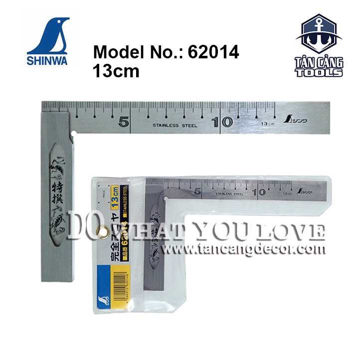 ️Thước Eke Vuông 13 cm Shinwa 62014 * Mô Tả Sản Phẩm : - Thương Hiệu : SHINWA - Sản xuất tại Trung Quốc theo tiêu chuẩn thị trường Nhật Bản - Mã Hiệu : 62014 - 4960910620148 - Màu Sắc : Màu Bạc. - Chất Liệu : Thép Chống Sỉ Rét - Được Phủ 1 Lớp Crom Cứng. - Kích Thước 2 Cạnh : + 94 x 18 x 8 mm. + 161 × 18 × 1,5 mm. - Trọng Lượng : 110 Gram. - Độ Sai Số Góc 90 Độ : Dưới 0,1 mm. - Dung Sai Chiều Dài : ± 0,3 mm. - Đơn Giá Bán 1 Cái. * Tính Năng Sản Phẩm : - Sản phẩm Thước Shinwa đạt tiêu chuẩn đo lượng chất lượng của Nhật Bản ( JQA, JIS ) - Với độ sai số thấp sản phẩm được dùng đểđo kích thước chiều dài, vẽ đường thẳng đánh dấu. đánh dấu. Đo 1 cách chính xác và nhanh chóng nhất. Ứng dụng nhiều cho các ngành như: công nghiệp, cơ khí chế tạo, gia công kim loại, đặc biệt lấy góc vuông trong chế tạo gỗ.... - Dụng cụ được làm bằng chất liệu cao cấp có khả năng chống oxy hoá giúp sản phẩm được kéo dài tuổi thọ và làm được ở nhiều điều kiện môi trường khác nhau. - Vạch chia được khắc âm, rõ nét, vạch chia rõ ràng bảo đảm độ bền và sự linh hoạt khi sử dụng.
