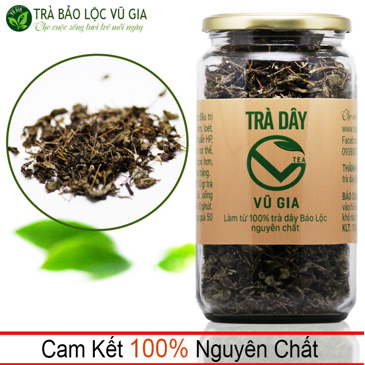 ️Sinh ra và lớn lên tại mảnh đất trà xanh Bảo Lộc Lâm Đồng, chúng tôi ấp ủ kế hoạch xây dựng một thương hiệu riêng, mang bản sắc địa phương. Từ đó Trà Bảo Lộc Vũ Gia đã ra đời và phát triển theo hướng sản xuất các loại bột nguyên chất 100% đầu tiên tại Việt Nam. Trải qua quá trình hình thành và phát triển chúng tôi đã cho ra đời những sản phẩm nguyên chất từ thiên nhiên ban tặng, giúp chăm sóc sắc đẹp, lợi ích về sức khỏe đồng thời cũng làm nguyên liệu cho món ăn thêm phong phú. Với phương châm mang đến cho người tiêu dùng Việt sản phẩm thật, giá trị thật chúng tôi cam kết: - Cam kết nguyên chất 100%. - Cam kết về an toàn thực phẩm - Không phẩm, không pha, không chất bảo quản. - Sở NN & PTNT tỉnh Lâm Đồng chứng nhận ATVSTP. - Bảo hành chất lượng. - Cam kết sản phẩm được chuyển trực tiếp từ cơ sở sản xuất đến tận tay người tiêu dùng Sau 1 thời gian xuất thô bột sang Nhật & Canada, nay chúng tôi muốn mang sản phẩm của quê nhà phục vụ cho chính người Việt với giá cả Việt! Là một trong những đơn vị đi đầu trong lĩnh vực sản xuất bột trà xanh – matcha ở Việt Nam, Vũ Gia đã dần khẳng định được thương hiệu cũng như chất lượng sản phẩm. Do nhu cầu nhu cầu khách hàng tăng cao nên chúng tôi đã nghiên cứu và cho ra thị trường bộ sản phẩm làm đẹp hoàn hảo từ thiên nhiên: - Bột Trà Xanh Nguyên Chất Bảo Lộc – Vũ Gia - Matcha Oolong Nguyên Chất Bảo Lộc – Vũ Gia - Tinh Bột Nghệ Vàng Nguyên Chất - Vũ Gia - Tinh Bột Nghệ Đỏ Nguyên Chất - Vũ Gia - Tinh Nghệ Đen Nguyên Chất – Vũ Gia - Mầm Đậu Nành Nguyên Chất – Vũ Gia - Bột Cám Gạo Nguyên Chất – Vũ Gia - Bột Đậu Đỏ Nguyên Chất - Vũ Gia - Mật Ong Nguyên Chất - Vũ Gia Để có được 1 sản phẩm chất lượng như ngày hôm nay chúng tôi đã không ngừng cải tiến trang thiết bị, máy móc hiện đại, nhờ vậy mà sản phẩm công ty chúng tôi ngày càng hoàn thiện hơn về hình ảnh, nhãn mác, màu sắc hương thơm tự nhiên và độ nhuyễn của sản phẩm… Trà dây nguyên chất Vũ Gia được làm từ 100 % các búp trà dây Bảo Lộc nguyên chất chon lọc , được thu hoạch và chế biến theo quy trình đạt tiêu chuẩn VSATTP . Trà dây đã được nhiều nghiên cứu chứng minh điều trị rất tốt các bệnh về dạ dày - tá tràng nhờ hoạt chất flavo noid . Ngoài ra trà dây còn có tác dụng thanh nhiệt giải độc , giúp an thần , ngủ ngon . THÀNH PHẦN : Làm từ 100 % trà dây Bảo Lộc nguyên chất . CÔNG DỤNG : - Hỗ trợ điều trị bệnh dạ dày như viêm , loét , trào ngược , diệt Vi Khuẩn HP ( Helicobacter Pylori ) , giúp tiêu viêm lành ở loét dạ dày . - Thanh nhiệt giải độc cơ thế hết nóng trong người tốt cho người bệnh gan . - Kích thích tiêu hoá giúp thèm ăn ngon ngon miệng . - An thần giúp tinh thần thoải mái ngủ ngon hơn - Hỗ trợ điều trị viêm đại tràng . CÁCH DÙNG : pha 5 - 10 gr trà với 150 ml nước sôi trong 10 phút . Tốt nhất khi uống trước các bữa ăn 15 - 30 phút . Mỗi ngày không dùng quá 50 g trà dây . BẢO QUẢN : Đứng trong hũ kín , để nơi khô ráo , thoáng mát Sản phẩm này không phải là thuốc và không có tác dụng thay thế thuốc chữa bệnh HSD : 12 tháng kể từ ngày sản xuất