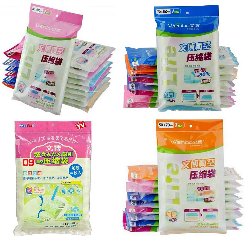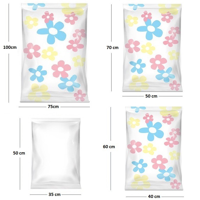 GIỚI THIỆU BỘ TÚI HÚT CHÂN KHÔNG - Đựng và bảo quản chăn màn, ga, gối, quần áo, khăn mặt … nén lại chỉ còn 1/4 kích thước ban đầu. - Bảo vệ để không bị bụi bẩn, côn trùng, ẩm mốc, mỗi mọt ... tiếp xúc - Đầu khóa zip đóng mở tiện lợi. Hút chân không đơn giản và nhanh chóng - Sử dụng đơn giản, cho hiệu quả từ 6-8 tháng với mỗi lần hút chân không - Chất liệu nhựa PE cao cấp, dày dặn, chắc chắn với độ bền cao, dễ dàng vệ sinh, làm sạch, có thể tái sử dụng nhiều lần, tiết kiệm được nhiều chi phí - KÍCH THƯỚC VÀ CÔNG DỤNG CỦA TÚI Dr Storage + Túi chân không 100x75cm xếp được chăn bông rộng 2m x 2,2m hoặc 6Kg quần áo + Túi chân không 70x50cm xếp được 8 chiếc áo len hoặc 2 chiếc gối nhỏ + Túi chân không 60x40cm xếp được 6 chiếc áo len hoặc 1 chiếc gối to + Túi Zip 60x40cm và 50x35cm -> không có hút chân không dùng để đựng đồ lót, vỏ gối, ga, khăn mặt ... - KÍCH THƯỚC VÀ CÔNG DỤNG CỦA TÚI WENBO + Túi chân không 110x80cm xếp được chăn bông rộng 2m x 2,2m hoặc 7Kg quần áo + Túi chân không 100x70cm xếp được chăn bông rộng 1,8m x 2m hoặc 6Kg quần áo + Túi chân không 80x60cm xếp được 10 chiếc áo len hoặc 1 gối to 1 gối nhỏ LƯU Ý: Túi có thể chứa được nhiều hay ít đồ còn tùy thuộc vào việc gấp quần áo và sắp xếp của mỗi người Đối với những người đi du lịch, túi hút chân không cũng rất cần thiết. Quần áo được gấp gọn gàng và hút chân không làm giảm tối đa khoảng không trong va li của bạn. Bạn sẽ mang được nhiều quần áo hơn cùng 1 va li như trước đây. Túi hút chân không rất cần thiết giúp cho tủ quần áo của chúng ta gọn gàng ngăn nắp Thiết kế tiện dụng Sản phẩm sở hữu thiết kế tiện dụng, giúp bảo quản chăn màn, gối đệm, quần áo dày… và nén lại chỉ còn 1/4 kích thước ban đầu, tránh bị bụi bẩn, côn trùng, ẩm mốc, mỗi mọt … tiếp xúc. Túi sử dụng khá đơn giản, cho hiệu quả khoảng 6 tháng với mỗi lần hút chân không, gắn kèm đầu khóa zip đóng mở vô cùng tiện lợi. HƯỚNG DẪN SỬ DỤNG Bước 1: Gấp gọn đồ cần cho vào túi, mở miệng túi rồi sắp xếp đồ vào trong túi thật ngăn nắp (Bước này rất quan trọng vì nó sẽ giúp bạn chứa được nhiều đồ vào trong túi). Bước 2: Sử dụng miếng nhựa đi kèm để miết khóa zip để khít miệng túi. Lưu ý: 99% túi bị vào lại không khí sau 1 thời gian sử dụng là do miết khóa zip không kỹ vì vậy hãy dùng miếng nhựa để miết khóa zip từ 3 - 4 lần nhé. Bước 3: Mở van của túi hút chân không. (không tháo miếng nhựa đỏ ra khỏi van nhé) Bước 4: Dùng bơm tay, bơm máy hoặc máy hút bụi. Lắp đầu hút vào van của túi hút chân không và hút khí Bước 5: Sau khi hút hết khí, bạn rút đầu hút và khóa van của túi hút chân không lại.