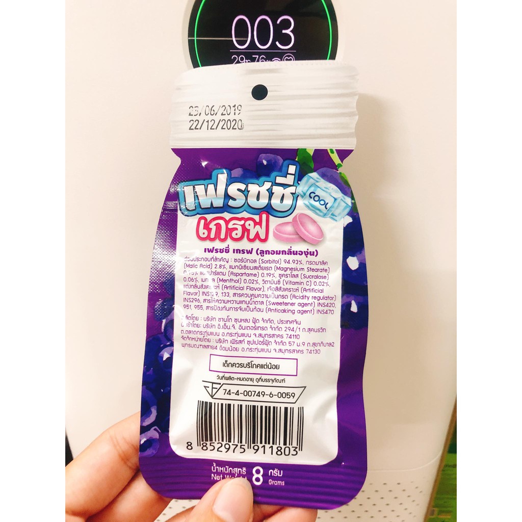 Kẹo nho - Hàng xách tay Thái Lan kẹo nho là kẹo ngậm thông cổ có hương dưa hấu t][ự nhiên ngọt dịu thơm ngon , kẹo có cả bạc hà nên cảm giác mát lạnh rất p][hê ? Kẹo làm từ hương vị][ trái cây hoàn toàn từ thiên nhiên ng lớn trẻ em ăn thoải mái nhé Xuất sứ Thái Lan Hạn sử dụng : 12/2020 Mã vạch : 8852975911803 Bịch 8gram #keoduahau #duahau #keo #ximuoi #keoximuoi #thailan #keothailan #keotao #keonho