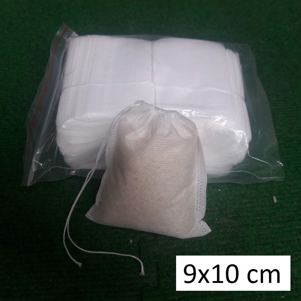 ️Sản phẩm gồm 100 chiếc túi lọc trà, kích thước 9x10cm. Khách hàng vui lòng cân nhắc kỹ về kích thước trước khi mua. MÔ TẢ SẢN PHẨM: -Chất liệu vải không dệt. -Có dây rút miệng túi. -Túi dùng 1 lần. -Đảm bảo không bị lọt bột ra ngoài kể cả khi đun. Shop có quay video thử đựng bột cà phê và đun sôi trong 5 phút, khách xem video ở phần hình ảnh phía trên nhé. -Tự phân hủy, không ô nhiễm môi trường. -Một túi đựng được khoảng 120ml, nếu là gạo thì khoảng 95g. CÔNG DỤNG: Trong đông y, túi được dùng để đóng gói các loại thuốc ngâm chân, thuốc sắc. Nhà thuốc dùng túi này đựng sẵn từng toa, khách hàng về chỉ việc đun sôi là dùng, vệ sinh nồi niêu cũng dễ dàng hơn. Túi đặc biệt phù hợp với những shop làm thảo dược gội đầu như bồ kết, chanh, sả... Shop đóng gói sẵn từng túi, khách đem về chỉ thả nước đun sôi là dùng. Khách hàng hay dùng túi này để lọc trà hoặc cafe, có thể làm sẵn trước nhiều túi xong khi dùng chỉ lấy ra châm nước sôi là dùng được. Các loại trà giảm cân đa phần đều cần nghiền thành bột nên sẽ phù hợp với loại túi này. Với người trồng cây thì nó rất tiện, dùng để đựng phân bón và để lên mặt chậu. Nhờ chiếc túi này mà bã phân bón không lẫn vào trong đất, giữ đất sạch và thông thoáng. Nhờ chiếc túi này mà người ta dễ dàng thay loại phân, thêm hoặc bớt phân tùy theo nhu cầu cây. Nhiều người chơi cây lá kim giàu kinh nghiệm đã dùng loại túi này thay cho cách dùng giỏ phân hoặc bón trực tiếp vào đất. Shop có 6 cỡ túi lọc có dây là 5,5x7 6x8 9x10 10x12 10x15 15x20 và 3 cỡ túi lọc không dây là 6x8 10x12 10x15. Túi không dây có thể hàn miệng bằng các loại máy hàn nhiệt thông dụng. Khách hàng xem trong danh sách sản phẩm của shop nhé. Shop không gộp làm 1 sản phẩm dù như vậy có lợi hơn cho shop do tăng được lượng doanh số bán ra nhưng sẽ thiệt thòi cho khách vì mỗi sản phẩm có cân nặng khác nhau, gộp lại thì khách sẽ luôn phải trả tiền vận chuyển cho loại to nhất, nên phí ship của khách sẽ cao hơn.