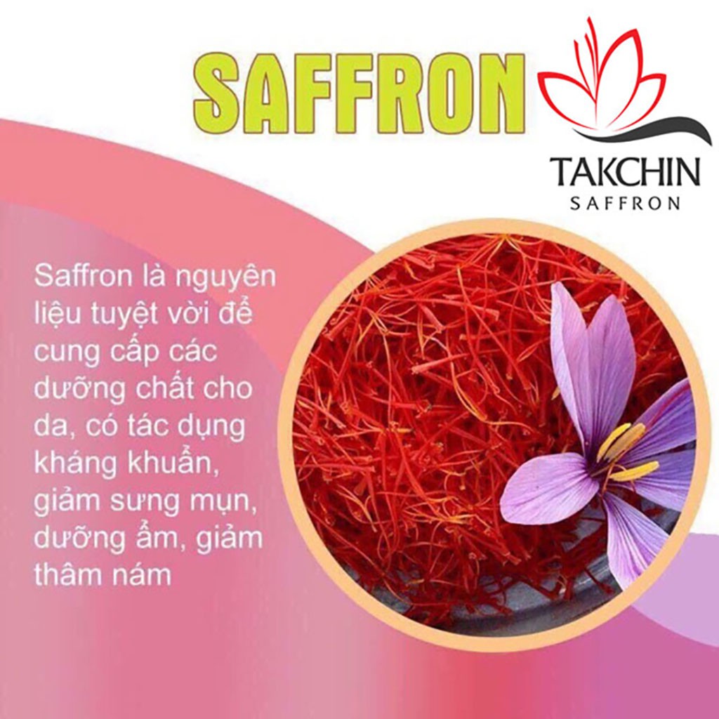- Saffron giúp người dùng hỗ trợ điều trị giấc ngủ tốt, làm làn da trở nên đẹp rạng ngời, ức chế tế bào ung thư, chống quá trình oxy hóa, tốt cho sức khỏe tim mạch, hỗ trợ điều trị bệnh trầm cảm, mất trí nhớ, Alzheimer, an thần và ổn định huyết áp,.....