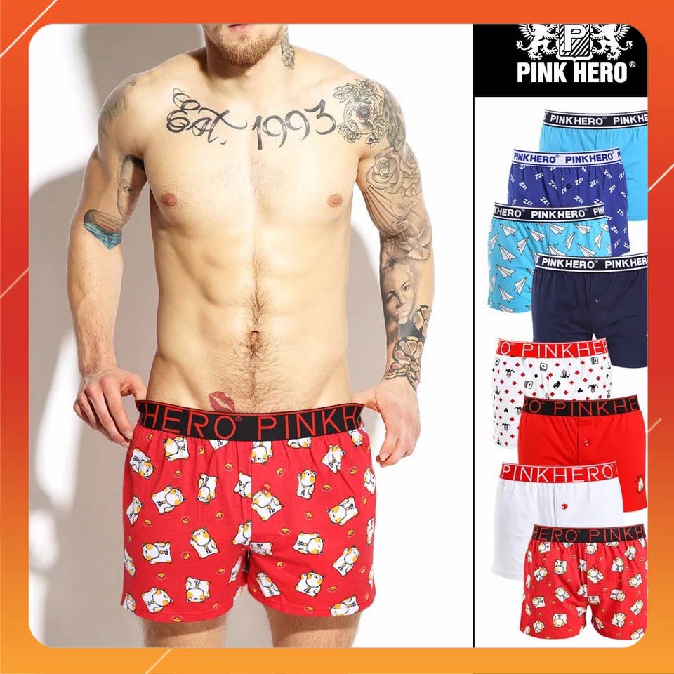 100KG có size - COMBO 4 chiếc quần đùi ngủ sịp boxer briefs nam cotton Pink Hero cotton cao cấp (Sỉ inbox)