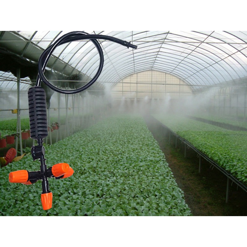 ️5 Bộ béc phun sương tưới cây 5 hướng bộ đầy đủ cho giàn treo, nhà kính Thông số kỹ thuật: Chất liệu nhựa cao cấp Áp suất hoạt động: 1.5bar – 4.0 bar Lưu lượng nước: 30 l/h – 40 l/h Tầm phun (bán kính): 1.0-1.2m Bộ thiết bị gồm: Đầu phun sương 5 hướng Van chốn rỉ nước (khi áp đạt 1.5bar van sẽ mở, và khi ngắt bơm giảm áp suất van sẽ đóng đột ngột giúp ngăn hiện tượng nước rỉ) Đối trọng Dây 6 Nối ren ngoài 21mm (sử dụng để nối với ren trong 21mm) Có thể điều chỉnh to nhỏ hạt sương. Phun theo 3 chế độ: phun sương, phun mưa, và khóa ở các hướng. Tính năng: Phun sương tưới giàn lan, không gian – cây cảnh Có thể treo ngược hoặc gắn trên dọc dựng Có thể tháo rời vệ sinh đầu phun sương Chức năng chống rỉ nước (đi kèm với van chống rỉ nước) 5 Bộ béc phun sương tưới cây 5 hướng bộ đầy đủ cho giàn treo, nhà kính Rất nhiều lợi ích khi sử dụng biện pháp tưới phun sương cho cây trồng. Vì vậy, thời gian qua đã có nhiều hộ trồng trọt với diện tích từ quy mô nhỏ đến lớn ứng dụng hệ thống tưới phun sương trong vườn nhà có kết quả cao. Áp dụng hệ thống tưới phun sương tự động không chỉ tiết kiệm sức lao động, tiết kiệm nước, mà còn hạ giá thành sản xuất sản phẩm so với tưới thủ công . Đặc biệt nhờ độ ẩm trong vườn luôn đồng đều nên chắc chắn sẽ đạt chất lượng tốt hơn. – Giai đoạn thu hoạch và mùa nóng sẽ đảm bảo độ tươi xanh của sản phẩm. – Khả năng tạo và duy trì độ ẩm cho một cây khỏe mạnh. – Nâng cao khả năng thẩm thấu của đất, giảm tạo vũng. – Chống sự phá vỡ kết cấu đất. Vệ sinh hệ thống vòi phun sương thường xuyên để đảm bảo tuổi thọ cho chúng -Kiểm soát môi trường: làm mát và ngăn bụi. – Nâng cao hiệu quả ứng dụng phân bón, thuốc trừ sâu bệnh. Không riêng trong trồng trợ mới cần hệ thống phun sương tự động mà có thể sử dụng hệ thống này trong việc làm mát chuồng trại chăn nuôi. #Béc_Phun_Sương #Béc_Tưới_Cây #Hệ_Thống_Phun_Sương #Tưới_Phun_Sương