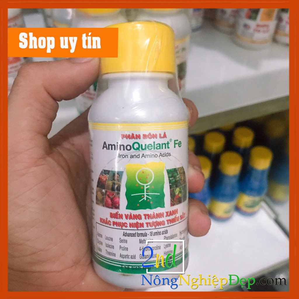 ️Phân bón Amino Fe (Sắt) – Biến lá vàng thành xanh (Nguyên zin) Phân bón Amino Fe – biến vàng là thành xanh lá Công dụngcủa Amino Fe: Bổ sung sắt (Fe) và một số dinh dưỡng hữu cơ cho cây. Thích hợp dùng cho mùa nắng (dùng 3 lần liên tục). Khắc phục hiện tượng vàng lá, bạc lá, thối thịt lá, và chống hiện tượng rụng lá hàng loạt do thiếu sắt (Fe) Giúp trái lớn nhanh, trái to, săn chắc, tăng màu sắc cho trái và hoa Giúp bộ lá xanh, cứng, bền, làm tăng quá trình quang hợp Giúp cây con phát triển nhanh, kích thích ra bông sớm, cây nhiều bông, bông lớn đẹp, màu sắc đặc trưng và lâu héo. Đây là sản phẩm hữu cơ, nên thích hợp cho lan. Nếu có tưới quá liều chút thì cũng không có hại cho cây. Bổ sung cho cây bị ức chế tăng trưởng, khắc phục tình trạng thiếu quang hợp dẫn đến vàng lá Sản phẩm được đăng ký sử dụng trên nhiều loại cây trồng: Rau màu, Cây ăn trái, Cây ăn lá, Cây công nghiệp, Cây kiểng và hoa lan Liều lượngcủa Amino Fe: Pha 1,5ml/lít nước, 1 tuần phun 1 lần trong giai đoạn nhú vòi hoa cho đến trước khi nở hoa Nhớ lắc đều khi pha trộn với nước.