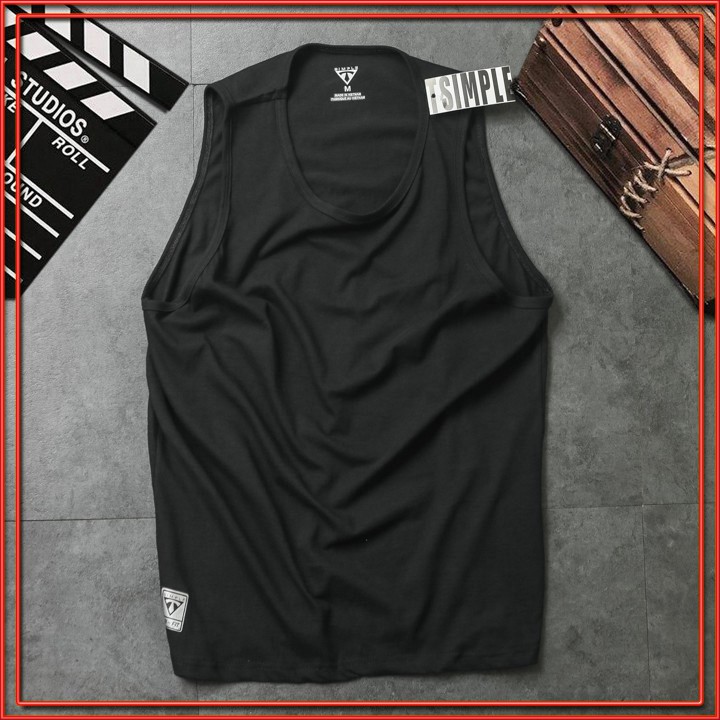 Áo Ba Lỗ Tập Gym Co Giãn 4 Chiều 100% Cotton T-Simple (Đen) [FUNSIES]