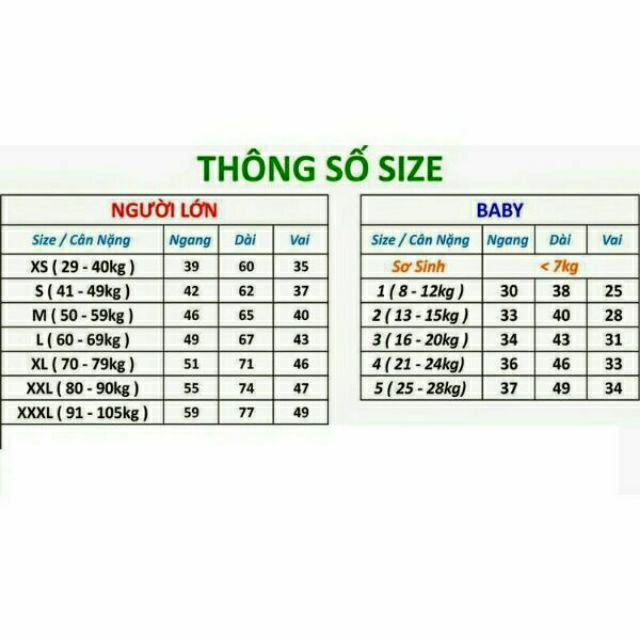 ️giá trên sản phẩm là 2 áo / các bạn đặt hàng mua từng size 1 vào giỏ hàng hoặc để số lượng 2 ở bất kỳ size nào shop sẽ tư vấn size theo cân nặng và chiều cao qua tin nhắn , hoặc gọi điện tư vấn trực tiếp áo thun đôi nam nữ với thiết kế cổ tròn , tay ngắn , kết hợp phối màu tăng phần trẻ trung nổi bật cho hai bạn chất liệu : thun cotton 4 chiều 100% không pha bất kỳ tạp chất mềm mịn co giãn tốt , tạo cho người mặc cảm giác cực kỳ thoải mái khi mặc . chất thun có tinh năng thấm hút mồ hôi tốt ngay cả khi hoạt động ngoài trời, các bạn có thể phối hợp với , quần jean , chân váy , dày thể thao , theo phong cách cực teen sản phẩm có size từ 5 kg tới 100kg số 1 : 8 tới 12 kg số 2: 13 tói 15 kg số 3:16 tới 20 kg Số 4: 21 tới 24 kg số 5:25 tới 28 kg