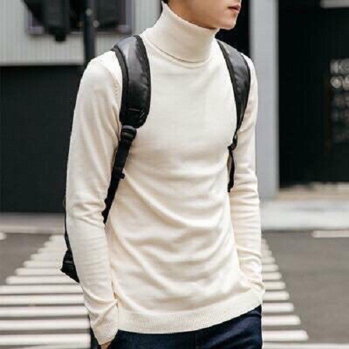 Áo len cổ lọ nam màu kem