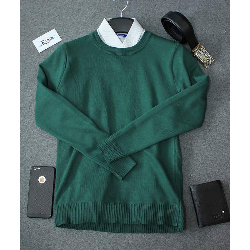 Áo Len Trơn Cổ Tròn Nam Màu Xanh Lục