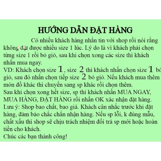 bộ quần đi biển giá sỉ , đầy đủ size số chất liệu : kate thái . nhẹ , nhanh khô, mát mẻ QUẦN ĐI BIỂN : chất liệu :kate thái hoặc thun da cá tùy từng mẫu lưng thun có dây rút , có túi quần 2 bên , chắc chắn , bền đẹp . là đồng phục đi biển lý tưởng cho nhóm , cặp đôi chất liệu mát , nhanh khô, fom chuẩn mặc đẹp có áo thun các loại đủ mẫu , do shop bán sỉ không đăng ảnh được các bạn thích mẫu nào ibox shop tạo combo cho các bạn đặt , hàng in may tận xưởng luôn sẵn có Shop xin kính chào quý khách. Shop xin gửi tới quý khách bảng size phía dưới, quý khách lưu ý chọn size đúng số kg. Bảng size chỉ áp dụng cho người có form chuẩn ko quá gầy và không quá mập lưu ý :khách đặt hàng lựa chọn đúng size chuẩn như bảng thông số shop gửi đúng size như đơn hàng ạ